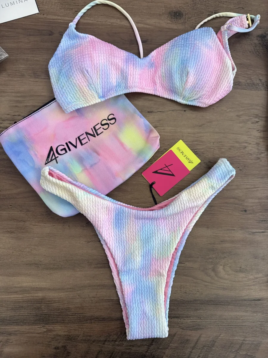 125WBWBK5408 BIKINI TOP tie die COPPE ESTRAIBILI SLIP fisso AMERICANO FISSO TESSUTO EFFETTO SPUGNATO SFUMATO FIRMATO 4GIVENESS da te in 24 h