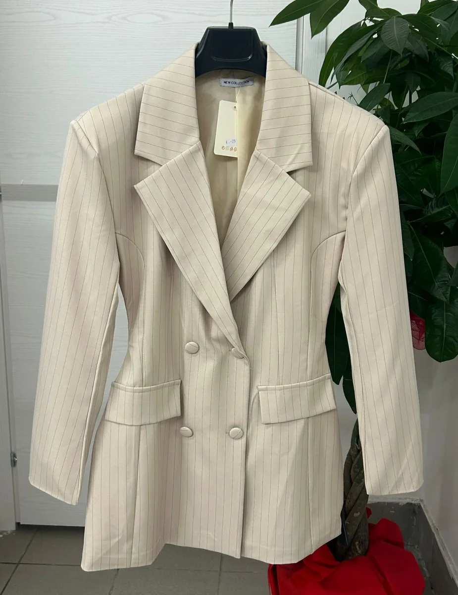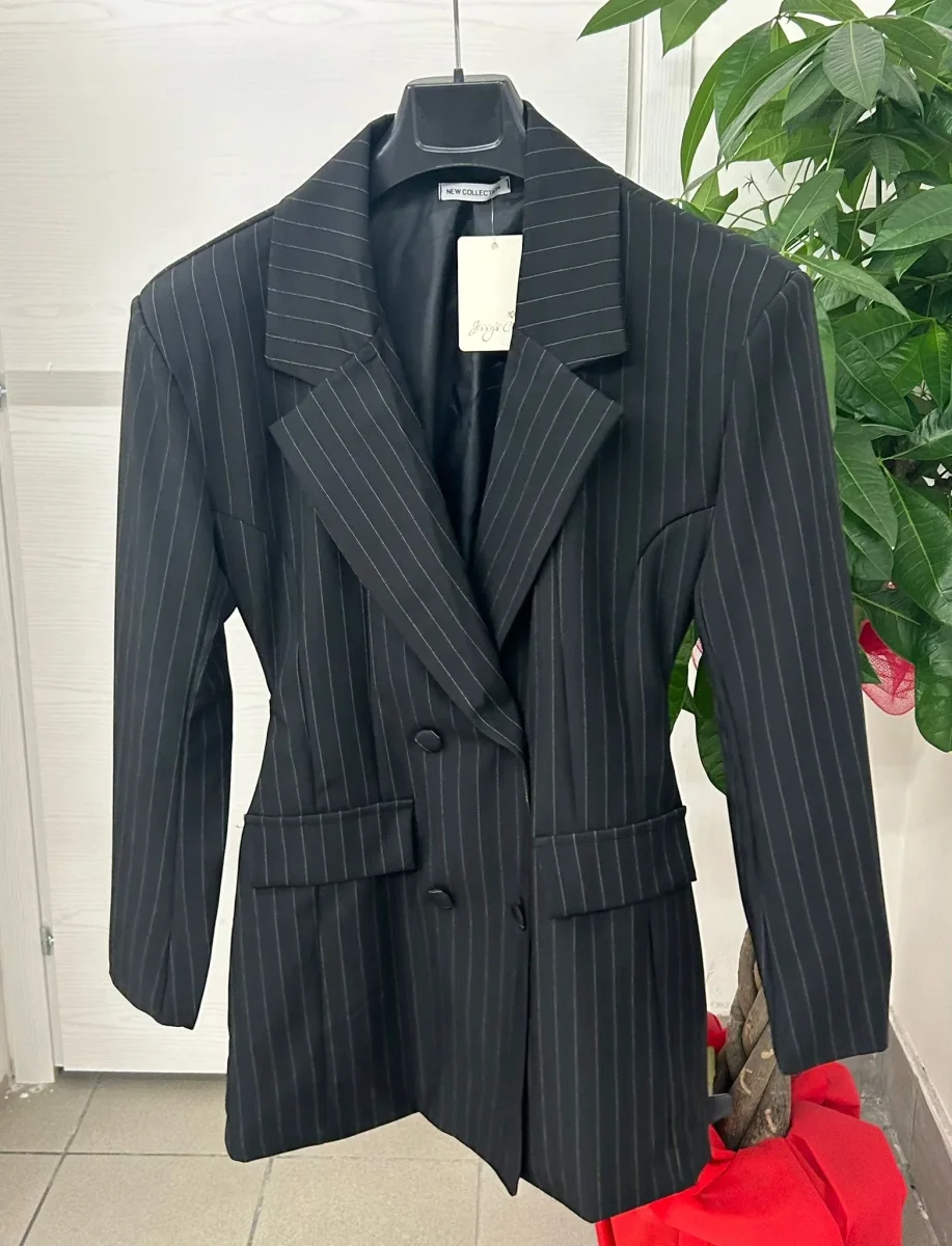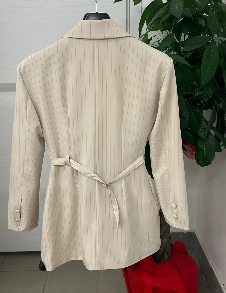 Abito blazer a righe con cinta regolabile sul retro