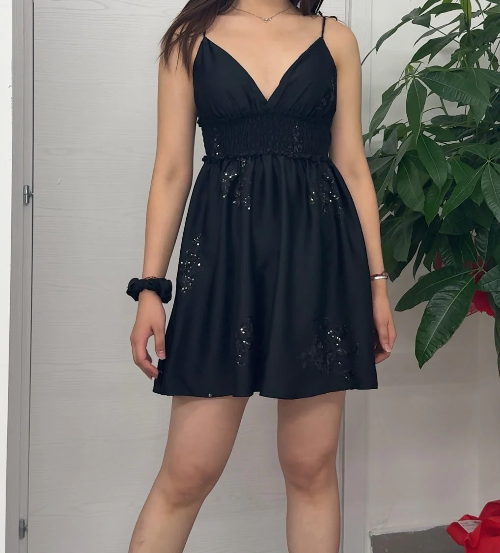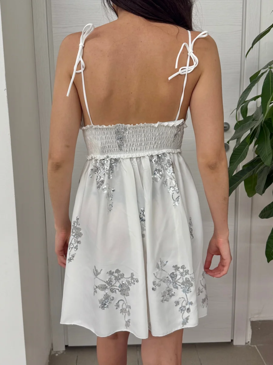 Recensisci per primo “Abito corto con paillettes con spalline a fiocco”