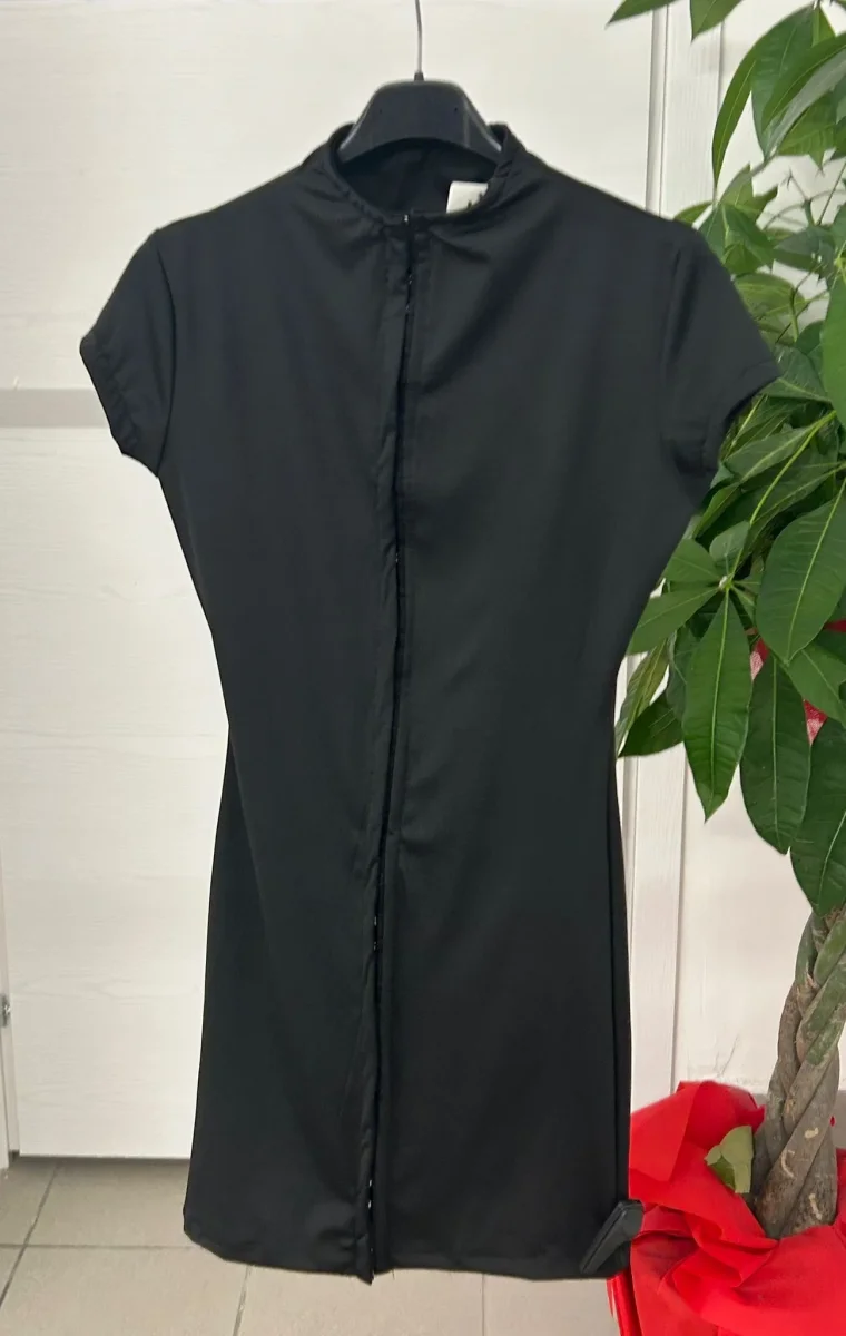 Abito corto in lycra con chiusura a ganci
