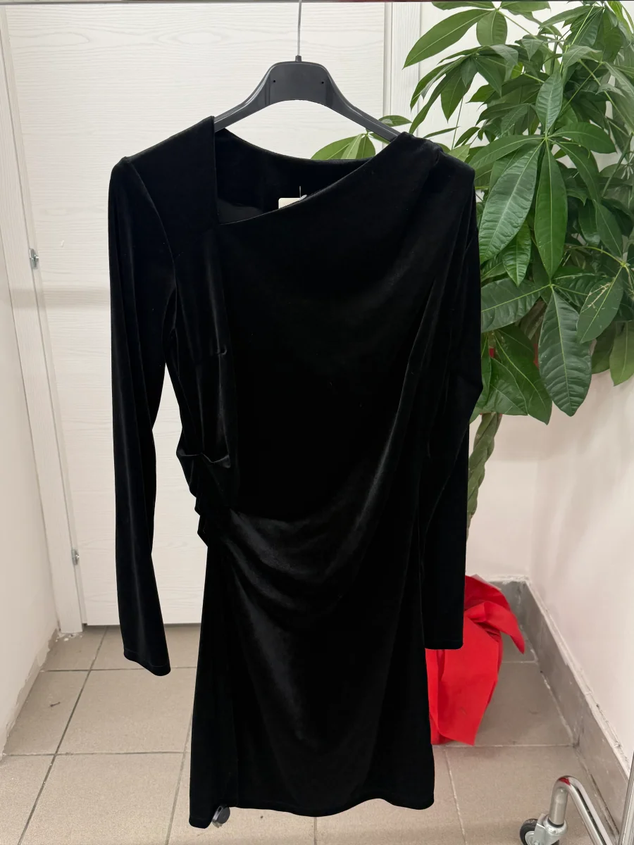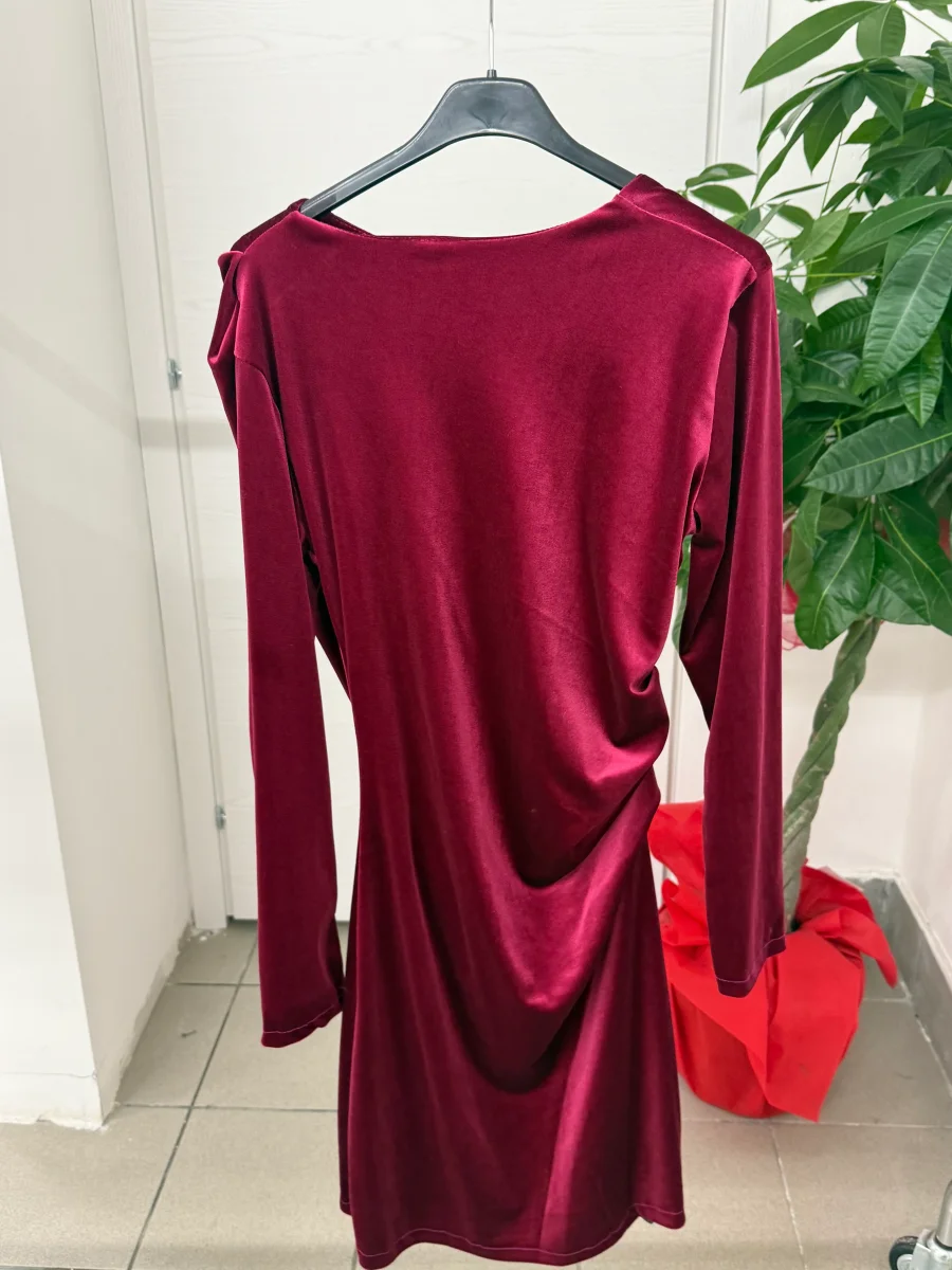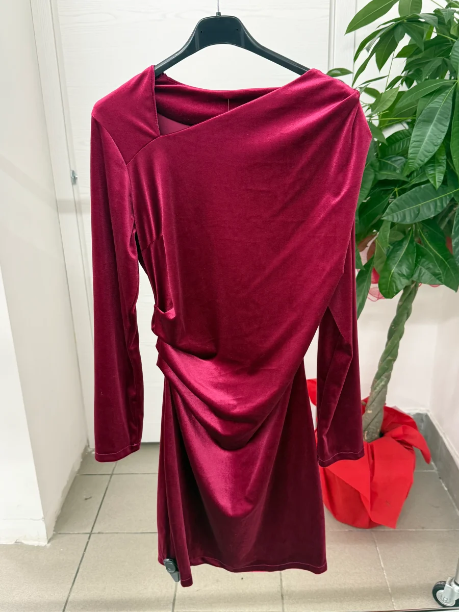 Abito in velluto a maniche lunghe con pence laterali