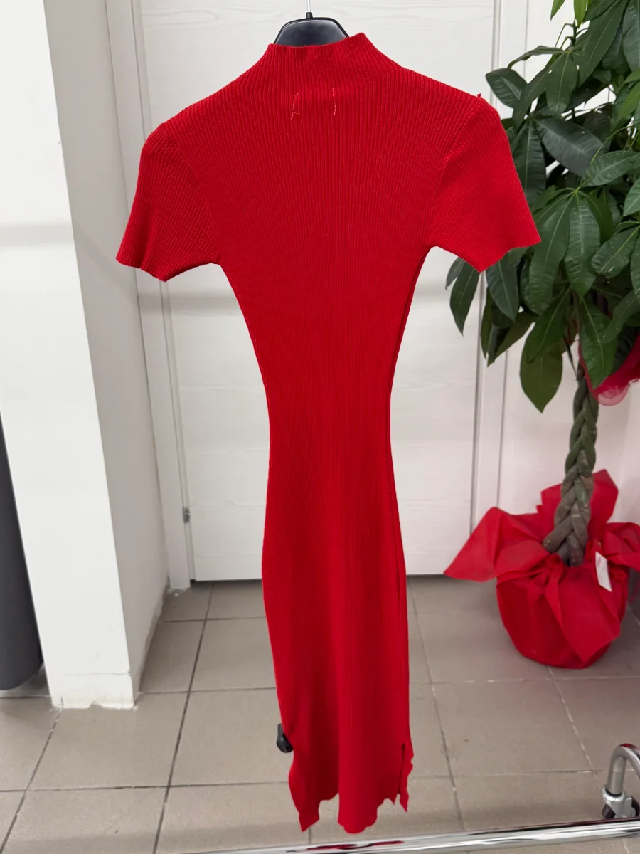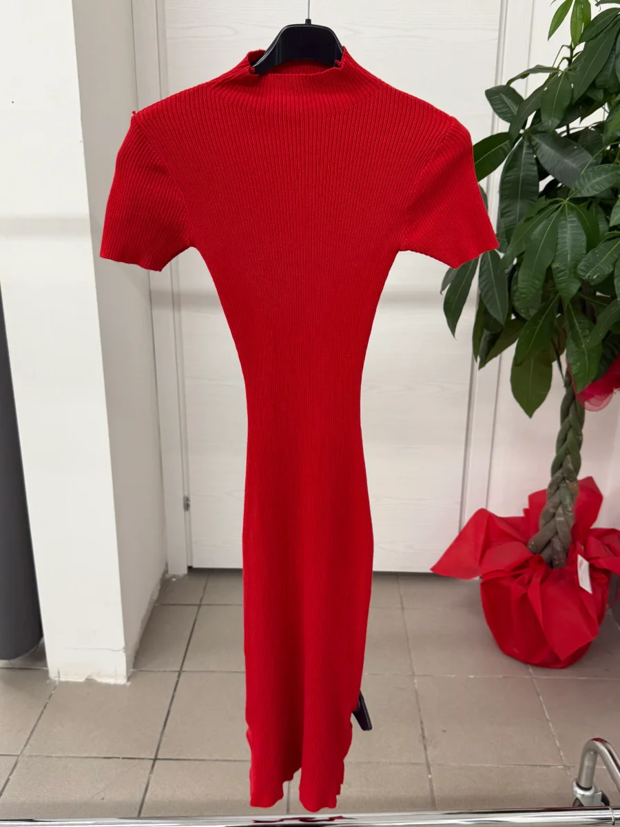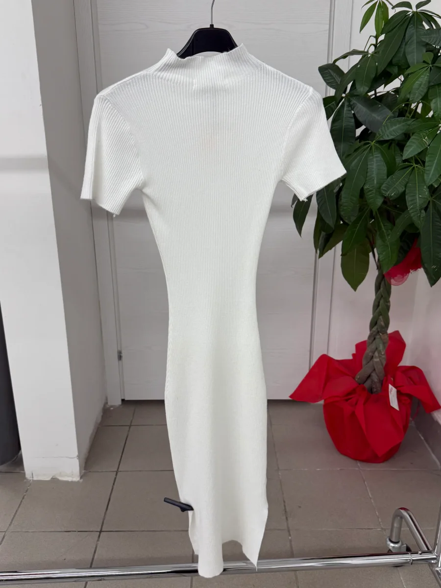 Abito lungo a costine a maniche corte con collo a lupetto