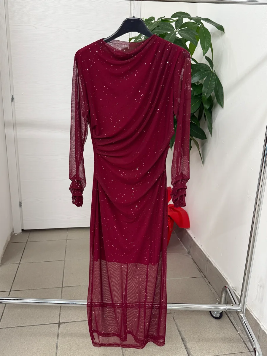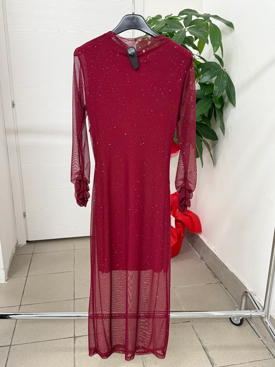 Abito lungo brillantinato con balze