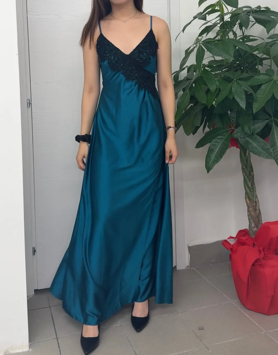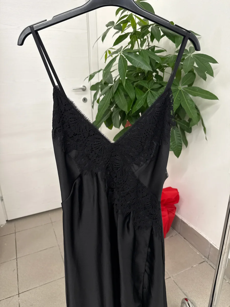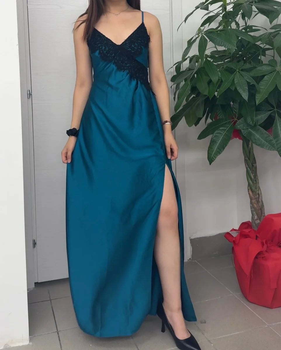 Abito lungo con pizzo e spacco sulla gamba
