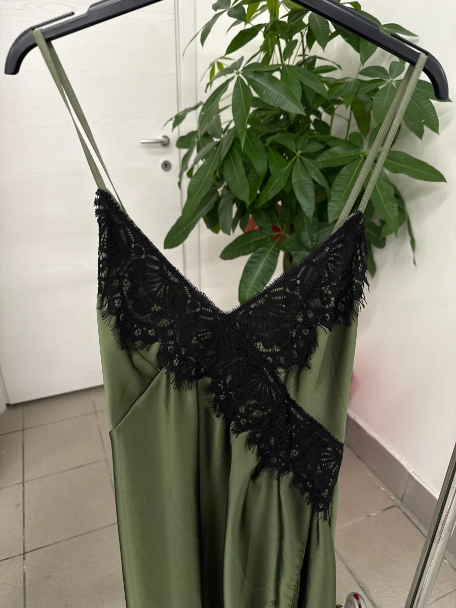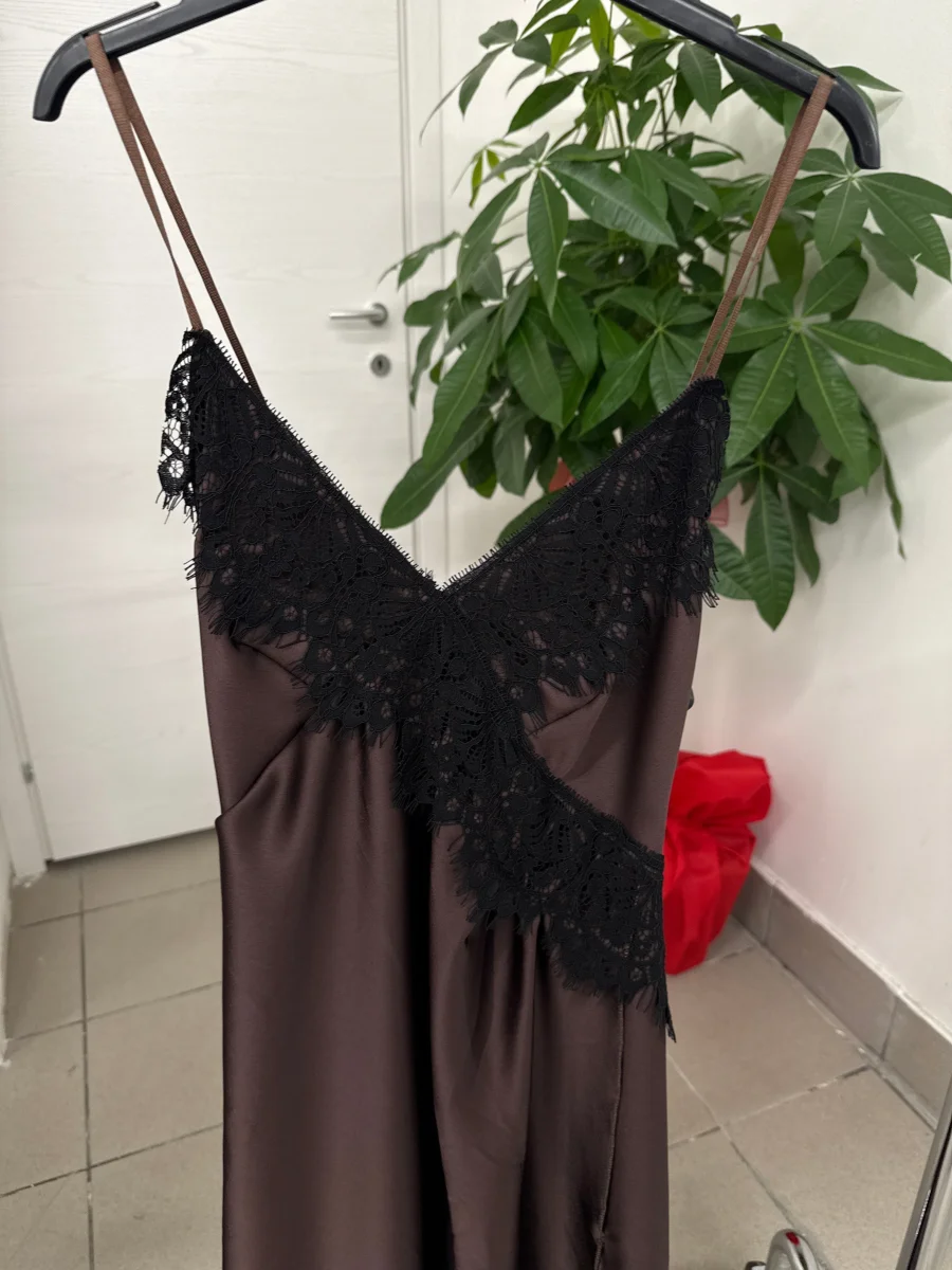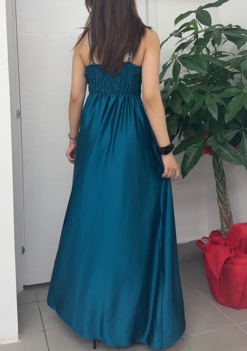 Abito lungo con pizzo e spacco sulla gamba