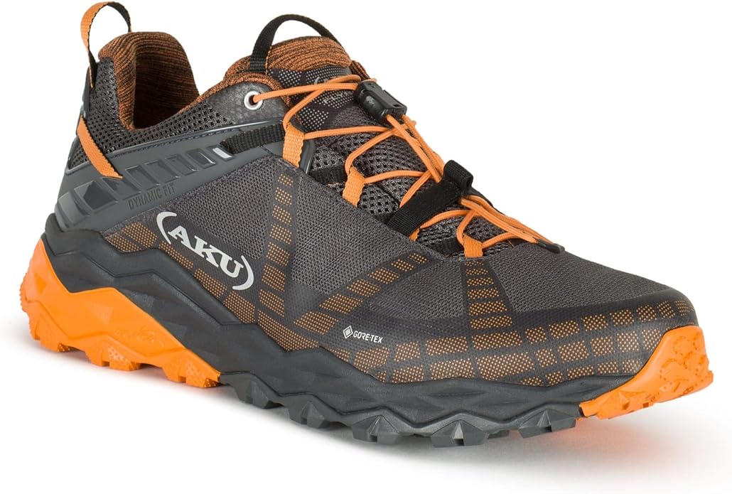 Calzatura da escursionismo veloce e per attivitร dinamiche, adatta per avventure off-road dov’รจ richiesta trazione, protezione e alta ammortizzazione. La suola Vibram Traction Lugs con Megagrip e zeppa High Cushion e High Rebound EVA offre aderenza e ammortizzazione sorprendenti. Addotta la tecnologia Dynamic Fit, che permette di adattare dinamicamente la tensione del tallone al proprio passo con un migliore comfort e stabilitร e il sistema AKU Elica Natural Stride System per favorire l’efficienza biodinamica.