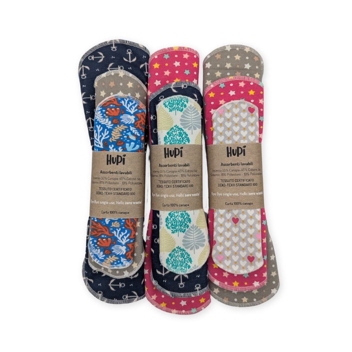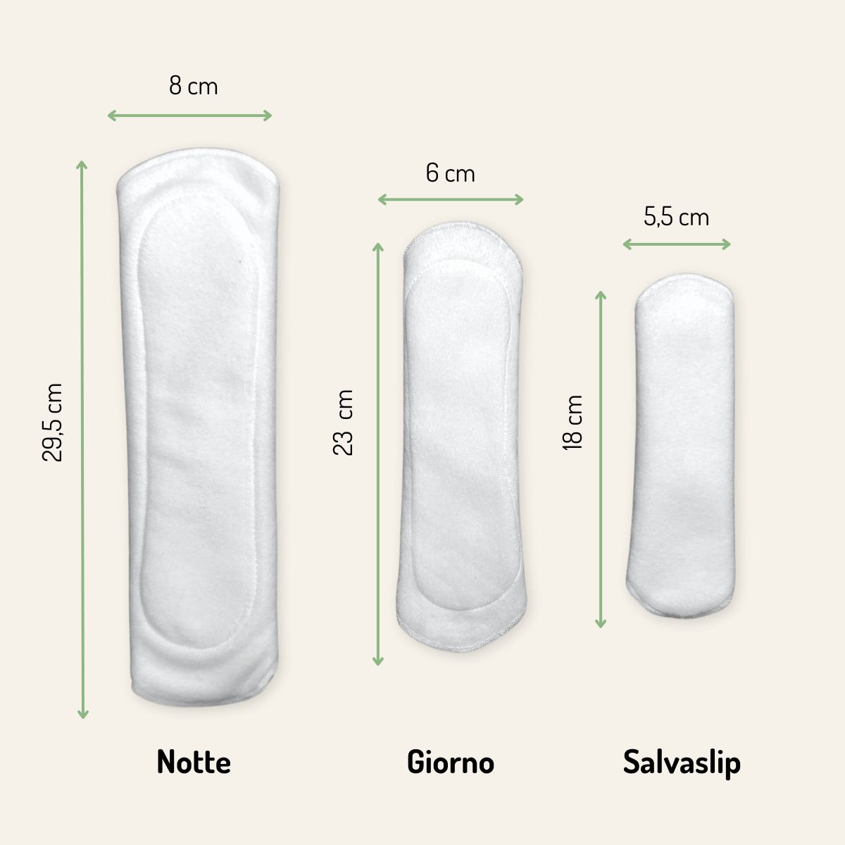 Il set di assorbenti lavabili studiato per chi vuole provare ma non sa cosa scegliere! Il tris è composto da: