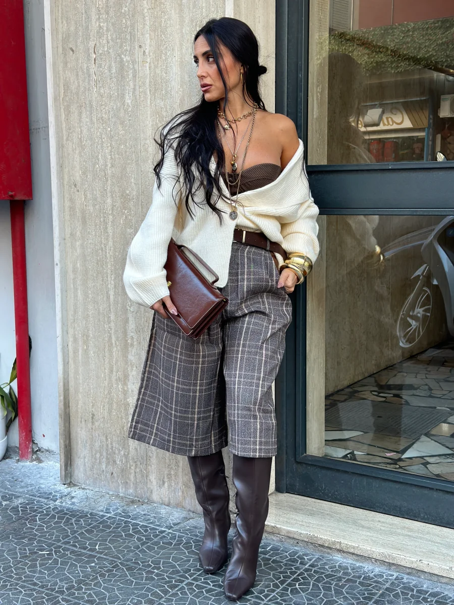 Bermuda Coffee Quadri Con Cintura