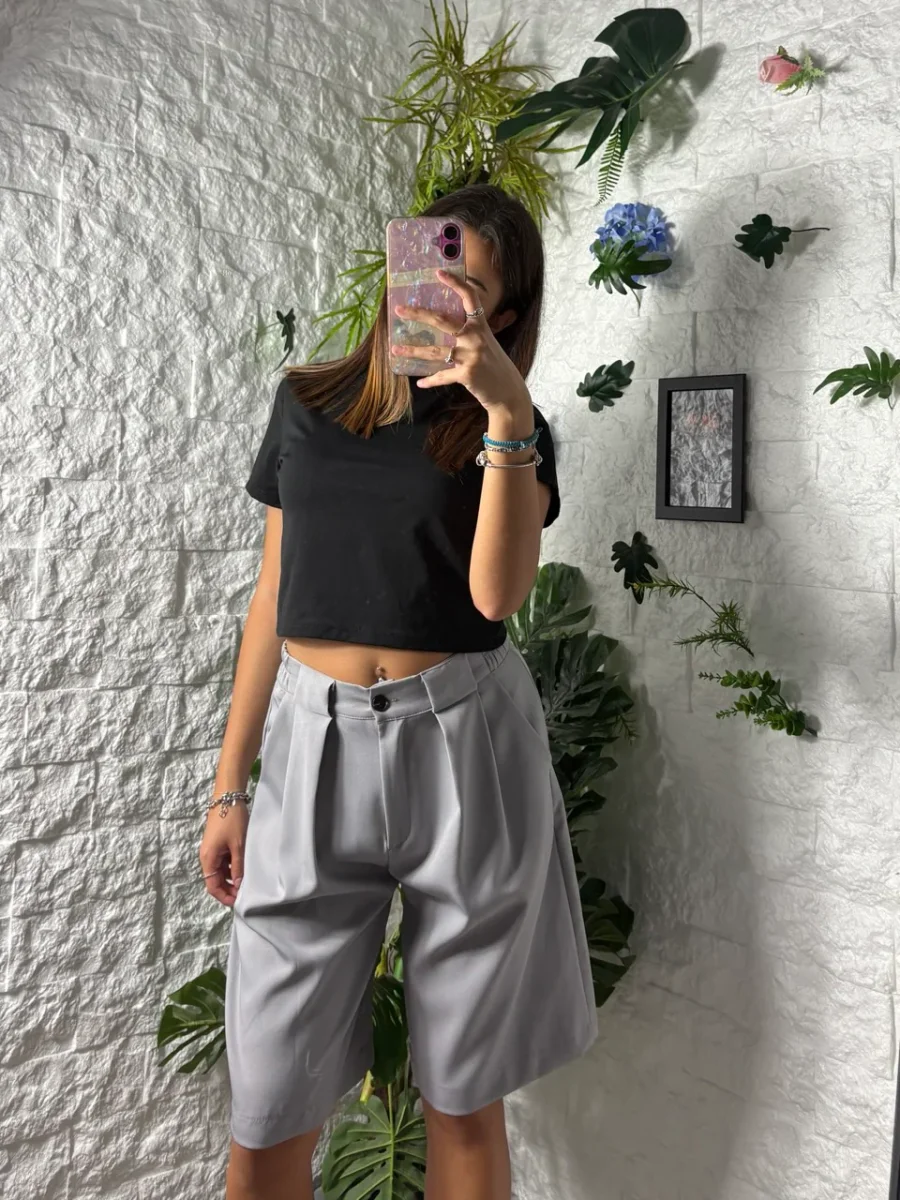 Bermuda elegante in tinta unita con pences Veste da una XS ad una M Taglia unica
