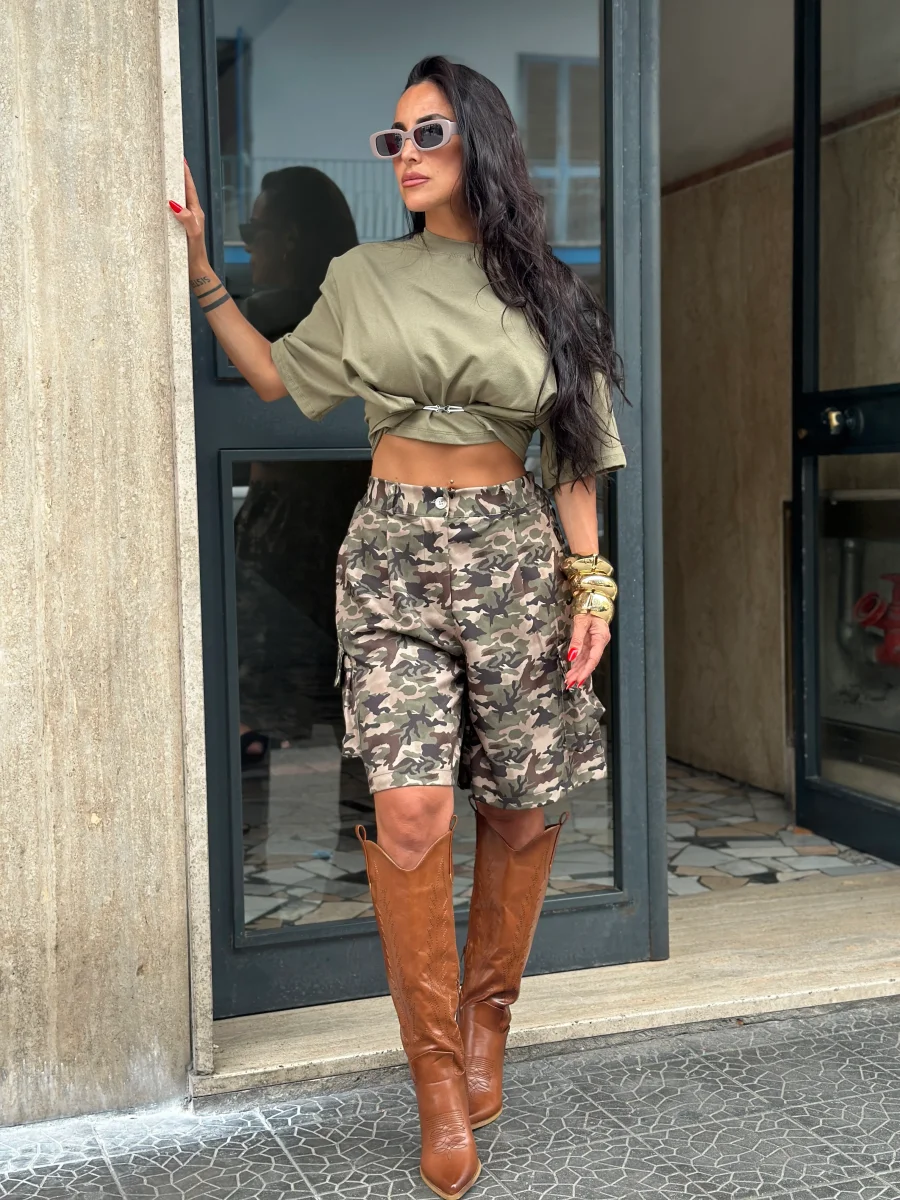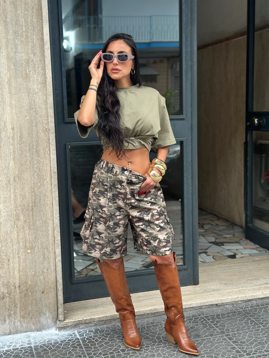 Bermuda in tessuto elasticizzato, con elastico insul retro