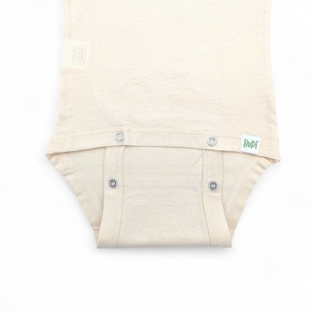 Questo รจ stato possibile grazie alle proprietร stesse del tessuto di canapa che cede con il calore del corpo e lโapplicazione di ulteriori bottoncini di chiusura, cosรฌ da poter essere adattato alle diverse misure e risultare comodo anche per le mamme che utilizzano pannolini lavabili che solitamente richiedono taglie di body differenti.