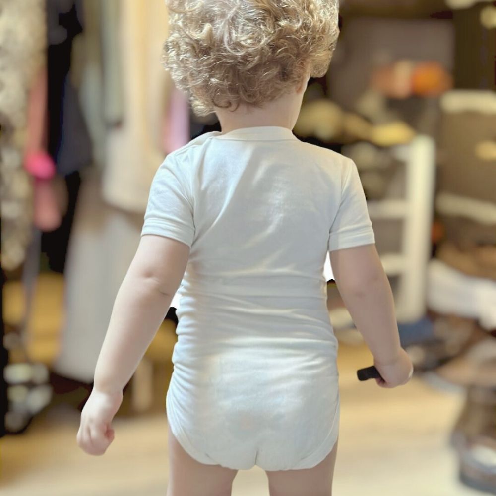 Un capo di biancheria intima etica e confortevole che si adatta alla crescita del bambino riducendo il numero di capi necessari nellโarco dei primi anni di vita dello stesso.