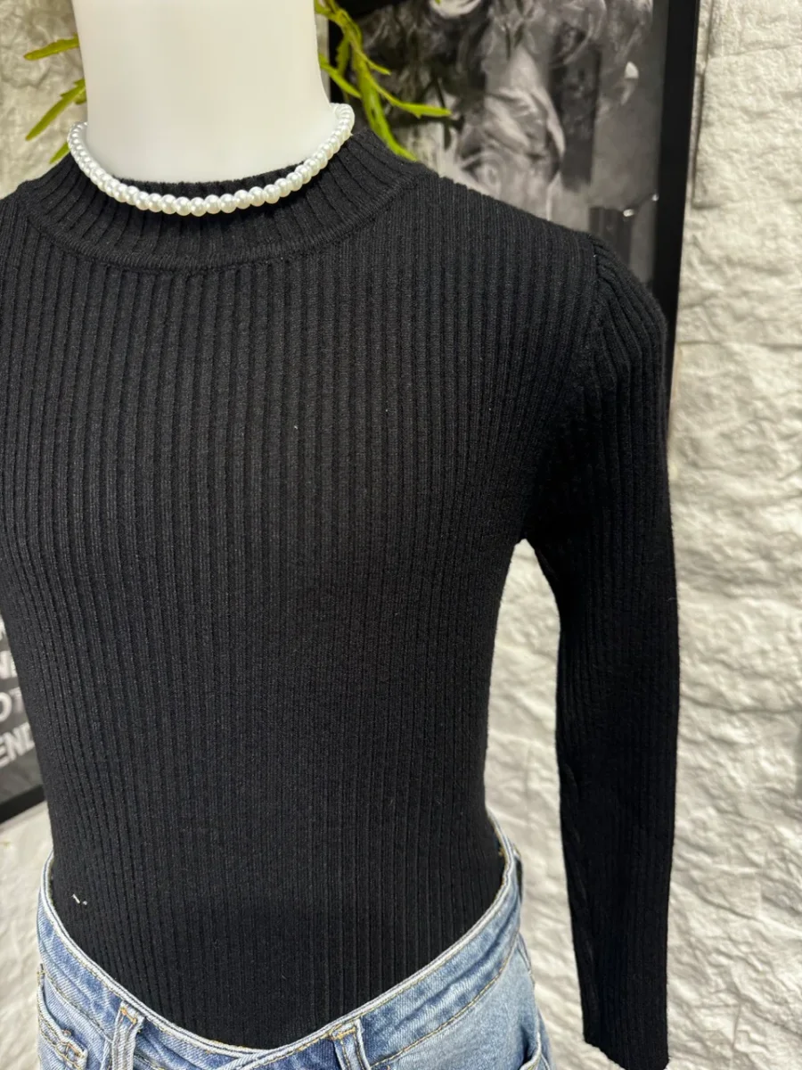 Body nero in maglia a costine con mezzo collo alto 6-16 anni