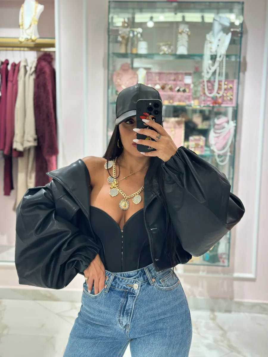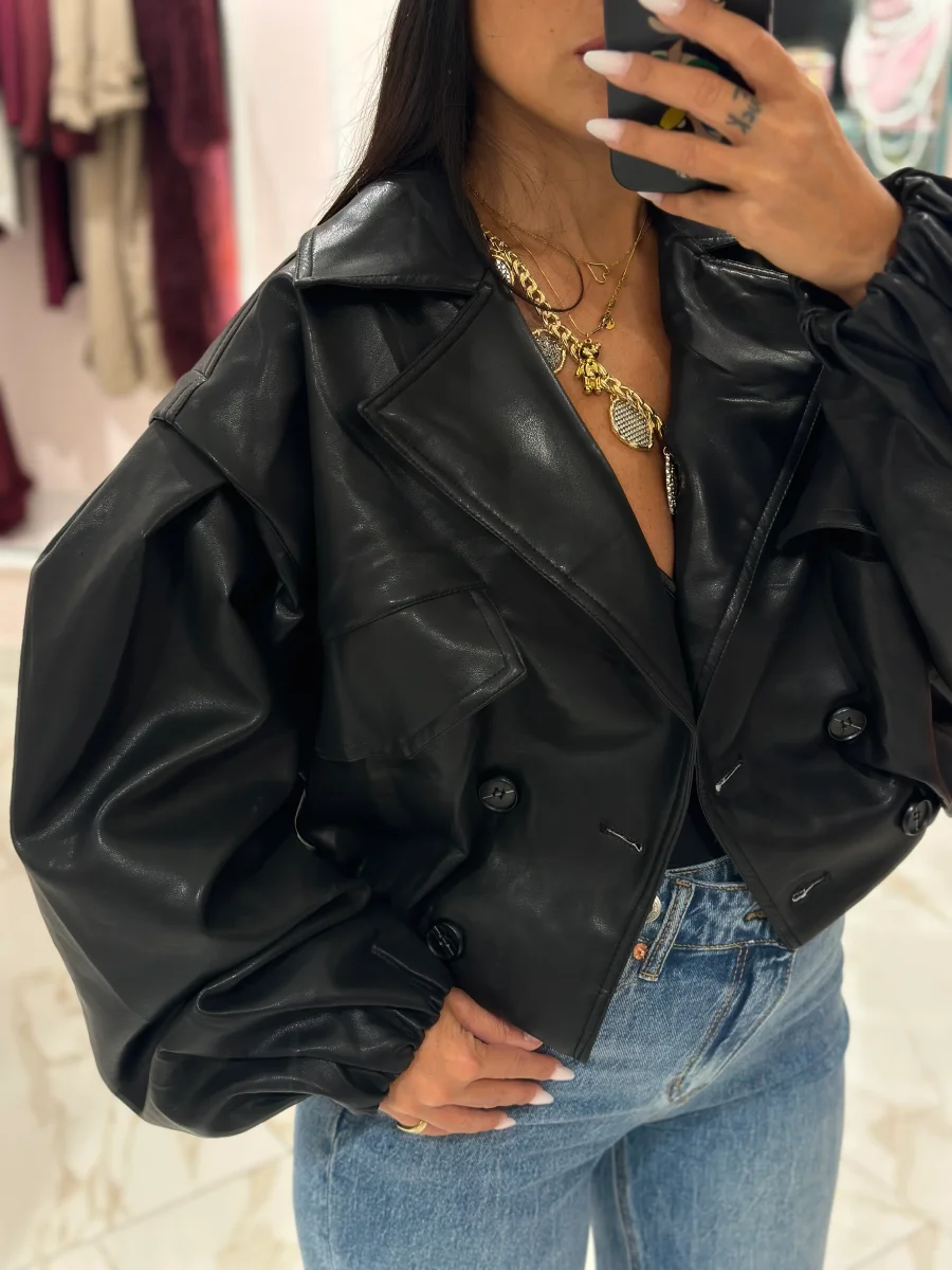 Bomber ecopelle con maniche a sbuffo.