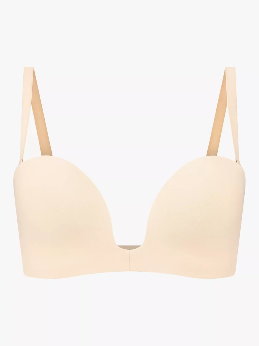 Il reggiseno senza spallineย Deep Plungeย รจ la soluzione ideale per outfit conย scollature profonde, senza spalline e senza schienale.