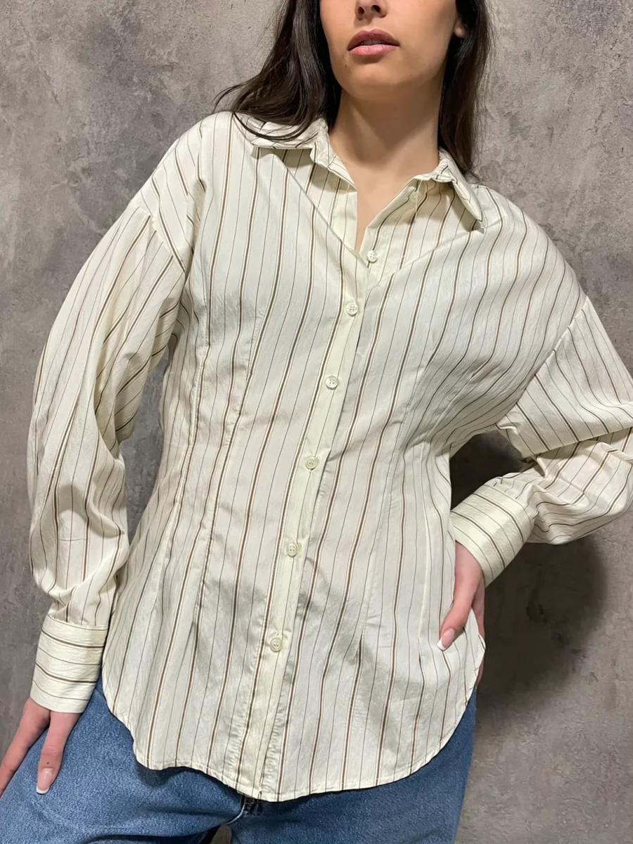 Camicia punto vita a righe colore panna, chiusura con bottoni.