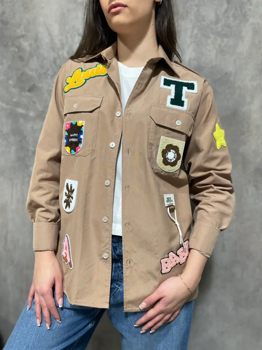 Camicia vintage con applicazione patch in spugna sul davanti.