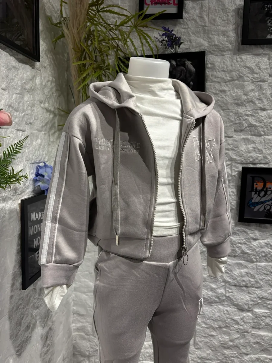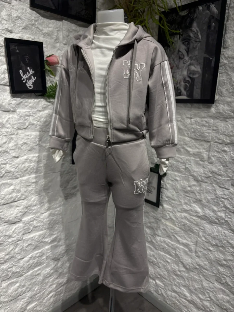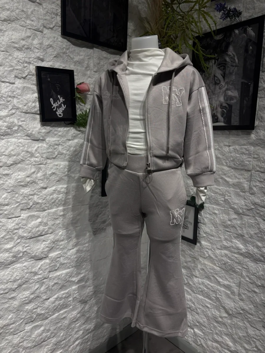 Completo grigio con felpa zip e pantalone a zampa NY – GARZATO 4-14 anni