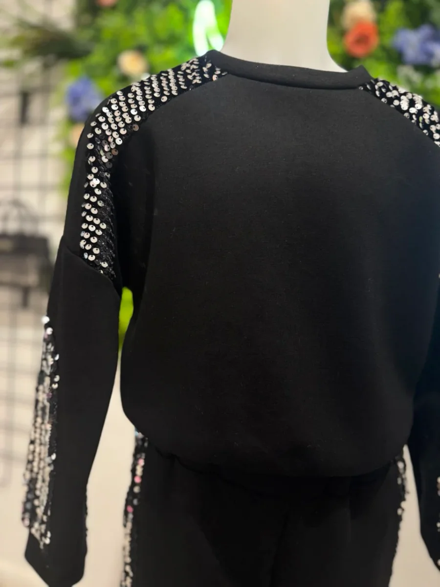 Completo nero con felpa e pantalone in paillettes – GARZATO 4-14 anni