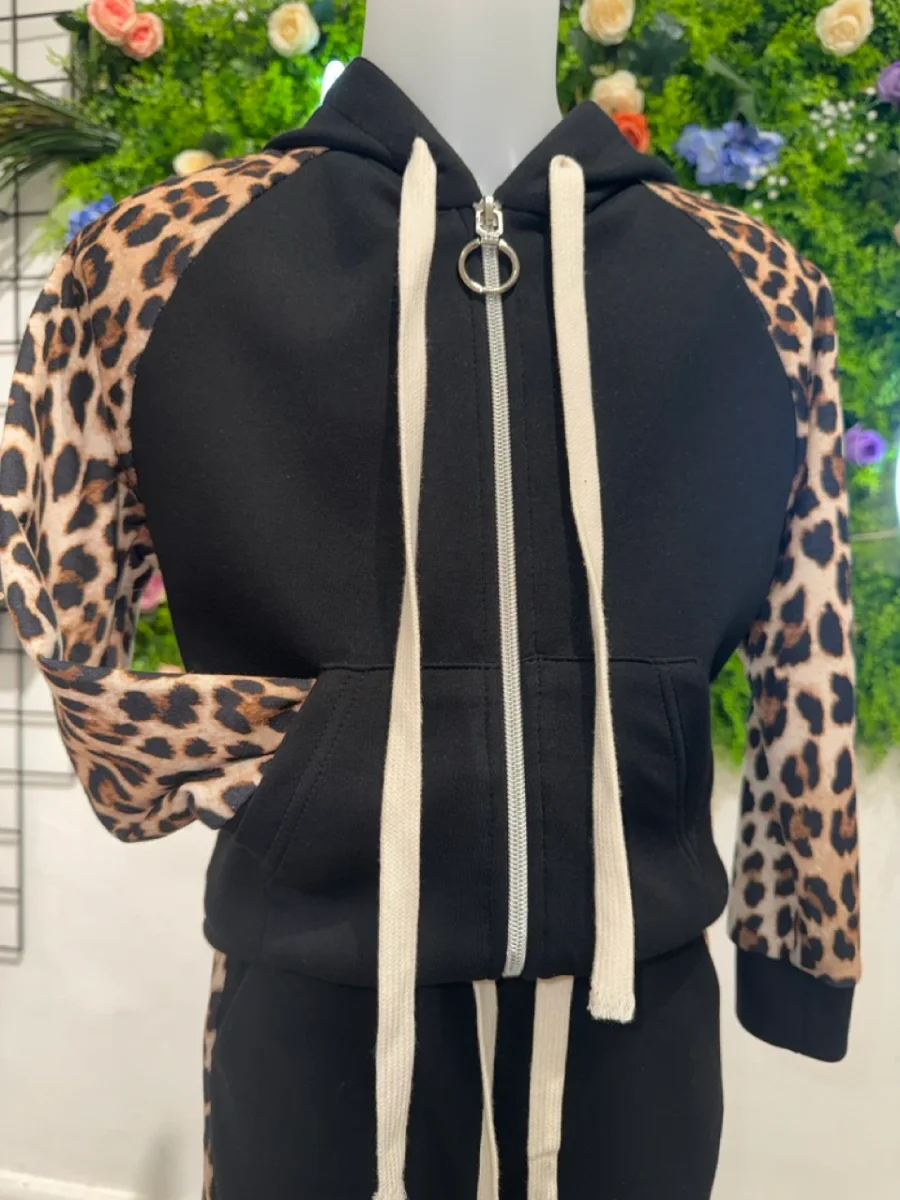 Completo nero con felpa zip e bande leopardate – GARZATO 4-12 anni