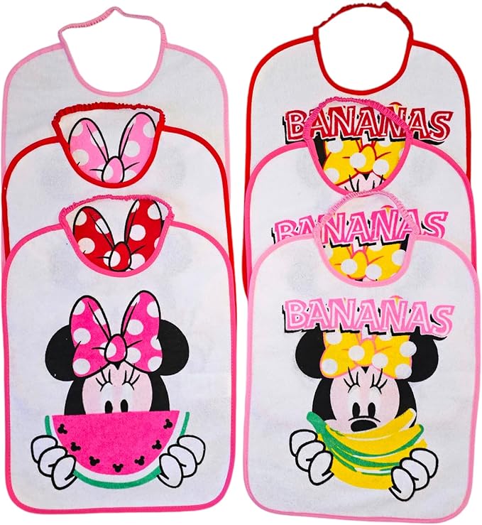 Ellepi – Bavette Grandi in Spugna con Retro in PVC Disney Minnie – Confezione Da 6 Pezzi