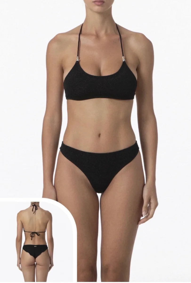 FK26-SW1102BK Tessuto: Lurex Dettagli: Capo dotato di imbottitura interna estraibile e dettagli in perline TOP con laccetti regolabili CULOTTE fissa Composizione: 77%pl 17%mtl 6%ea Lavaggio: Si consiglia lavaggio a mano in acqua tiepida