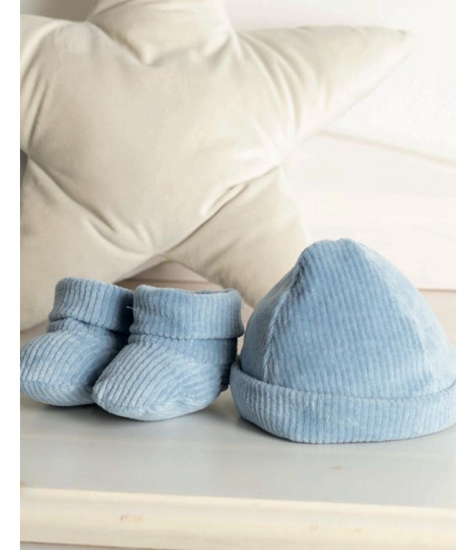 Il set cappellino e scarpette in ciniglia Gary รจ un accessorio indispensabile per completare il corredino neonato. Pratico, caldo e soffice, offre comfort e protezione sin dai primi giorni. Perfetto anche come idea regalo coordinata con la tutina.