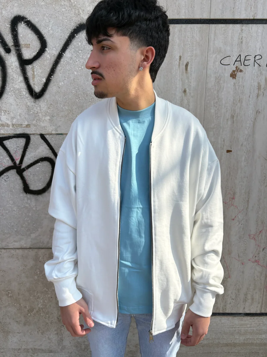 La nostra giacca Bomber Primaverile perfetta per ogni occasione. 100% cotone garzato Vestibilita Over-Size Composizione taglie: S-M-L-XL Made In Italy