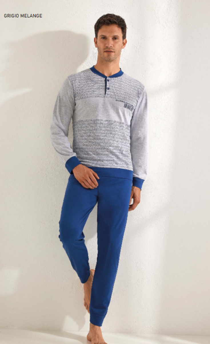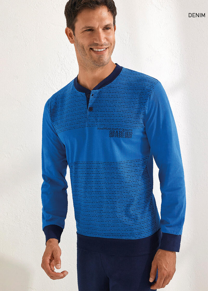 Pigiama uomo serafino a 2 bottoni + pantaloni con polsino.
