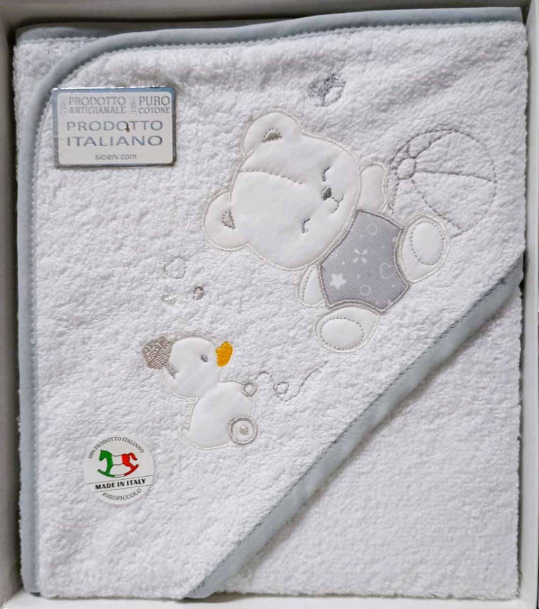 Accappatoio Neonato in Spugna Idrofilo con Cappuccio Ricamato โ Mio Piccolo Art. 57 dis. 372