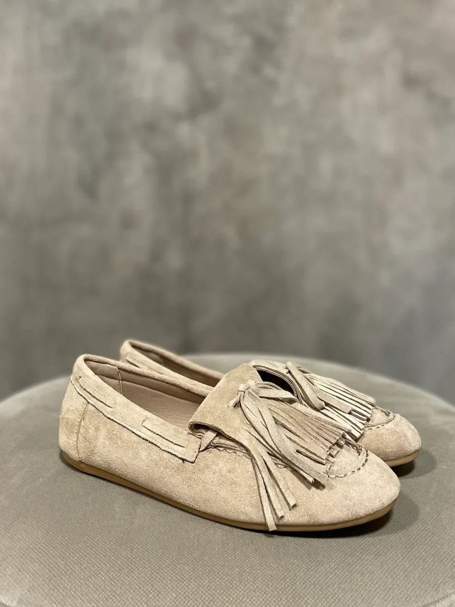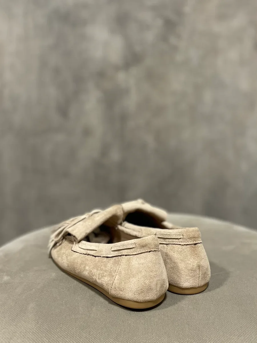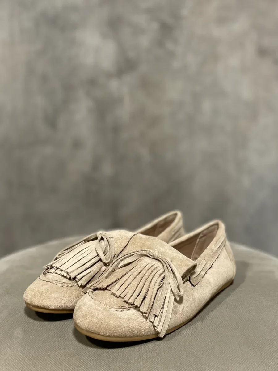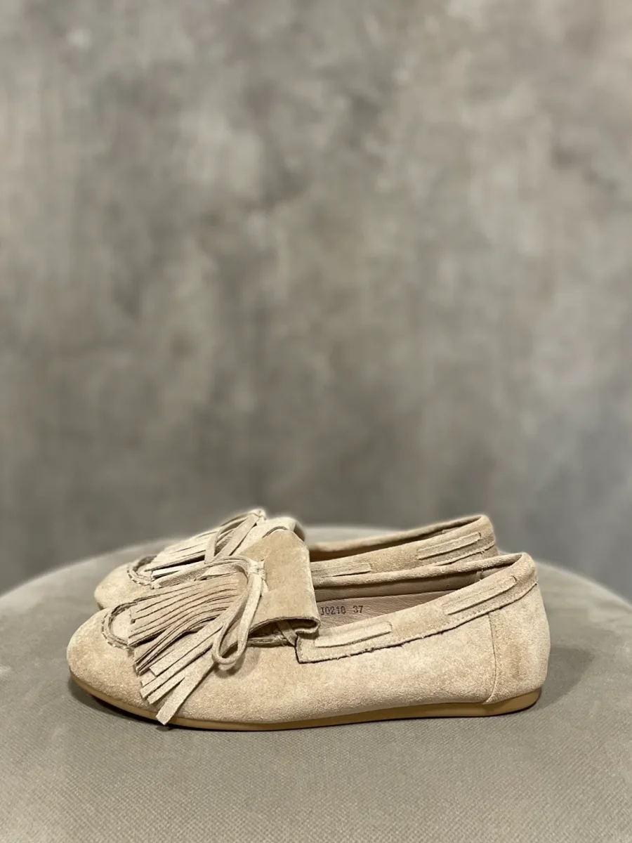 Mocassino leggero con frange colore beige.