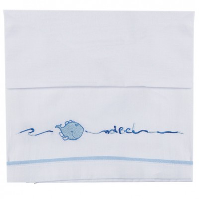 Set con un Pesciolino Ricamato di color Celeste che attraversa delle Fascie sottili di Color Celeste a Sfondo Bianco.