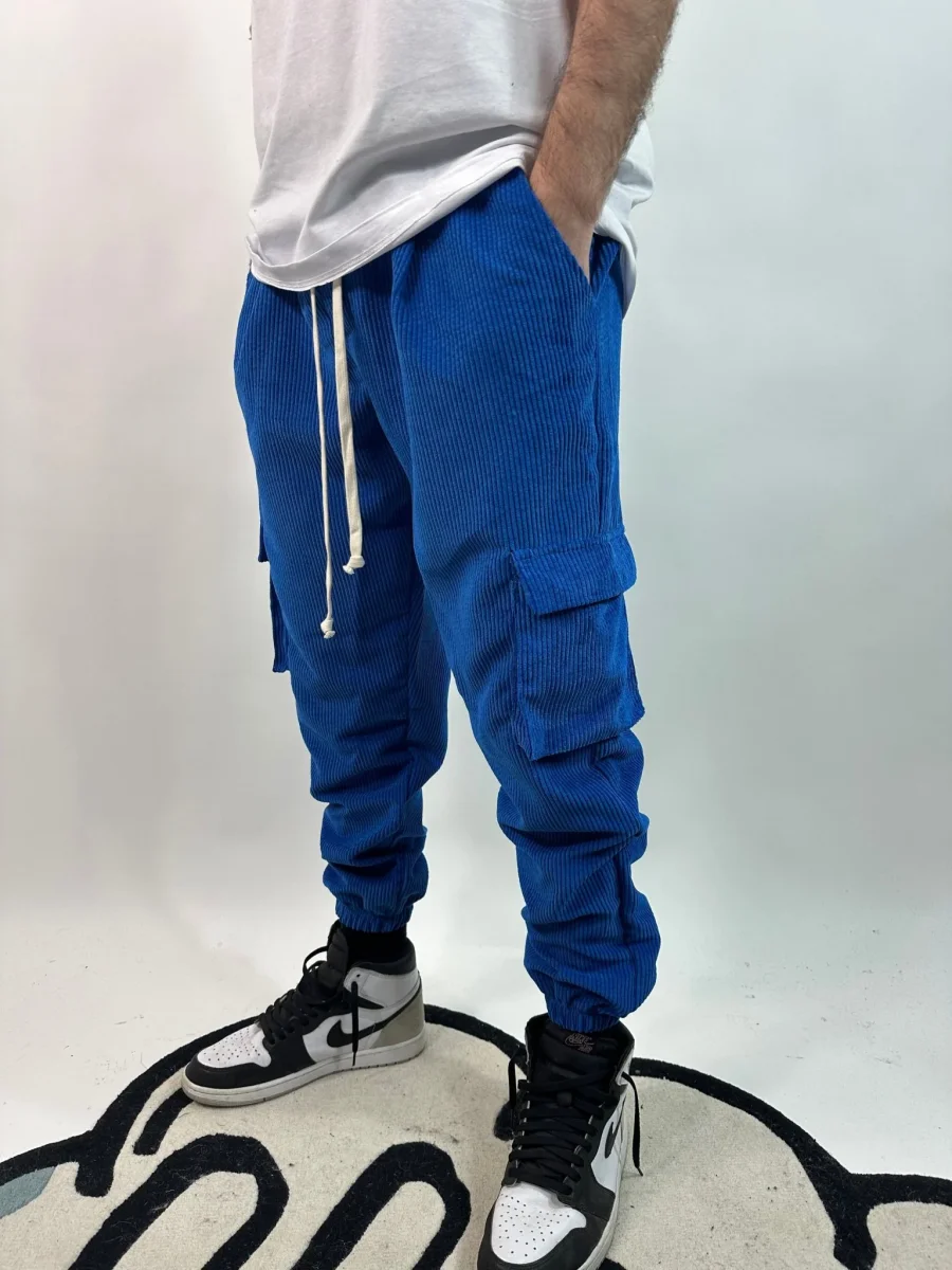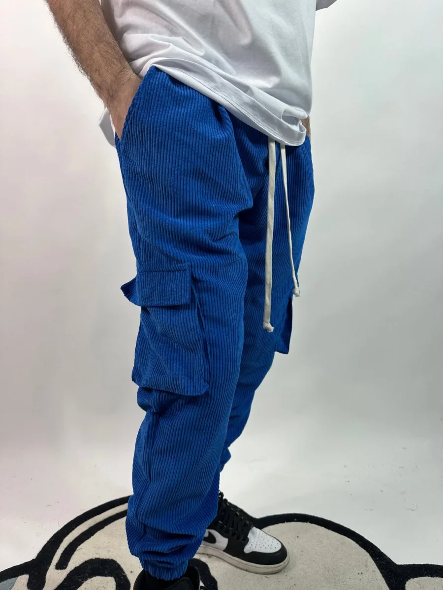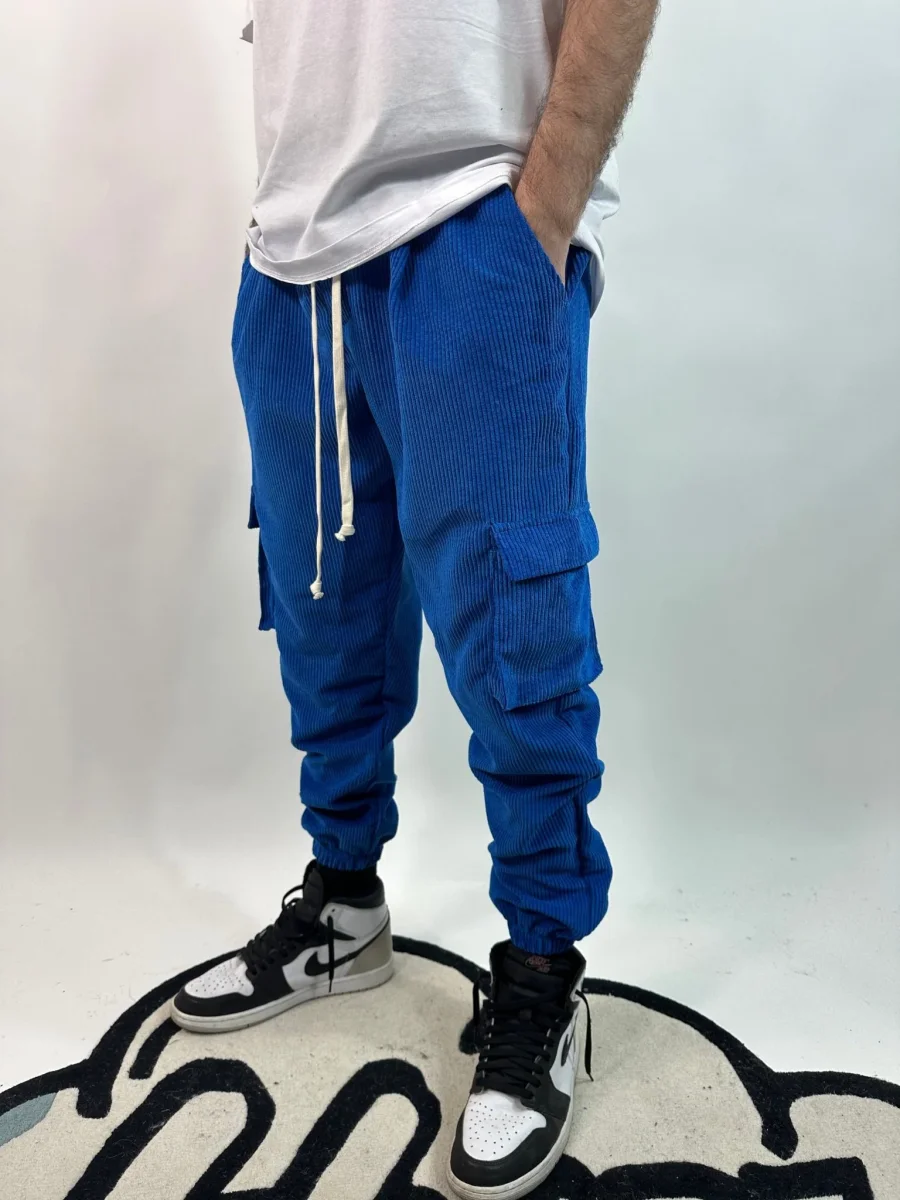 Pantalone Cargo a Coste Blu