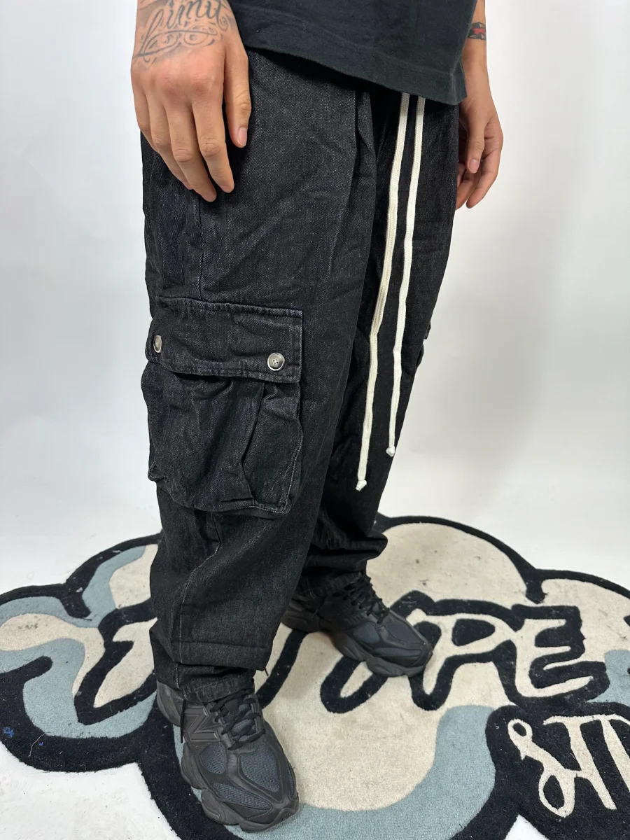 Pantalone Cargo ANDME Sartoriale Effetto Jeans Nero