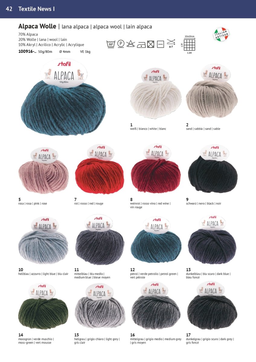 Composizione: 70% Di Lana Di Alpaca, 20% Di Lana, 10% Acrilico.