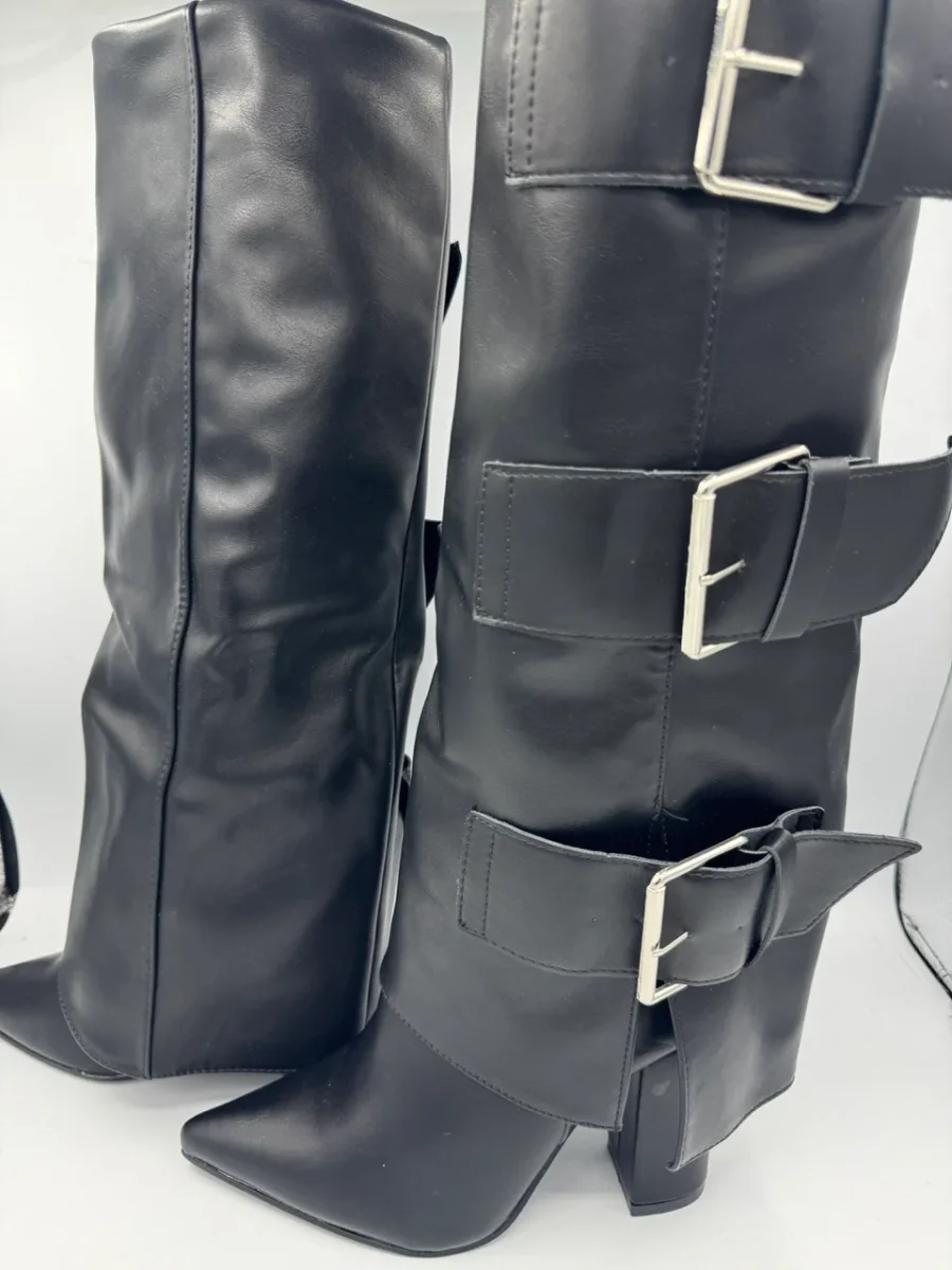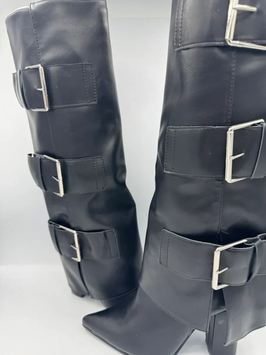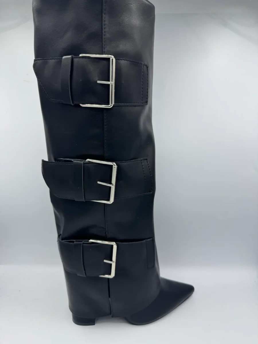 Stivale alto nero a punta con tre fibbie laterali regolabili Taglie disponibili: 36-37-38-39-40-41