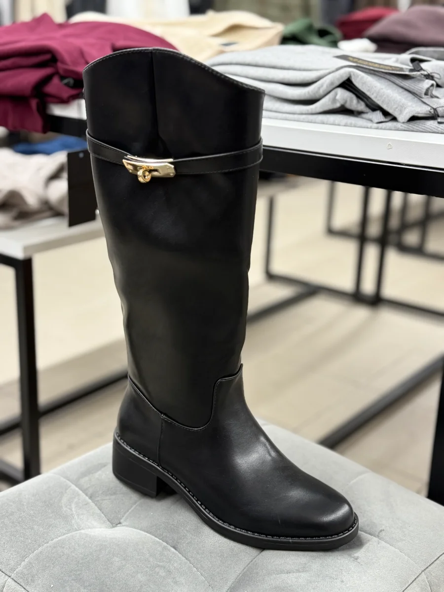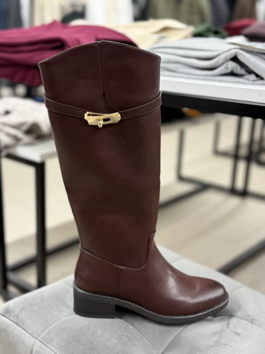 Stivali in ecopelle alto con cinta tacco 3,5cm