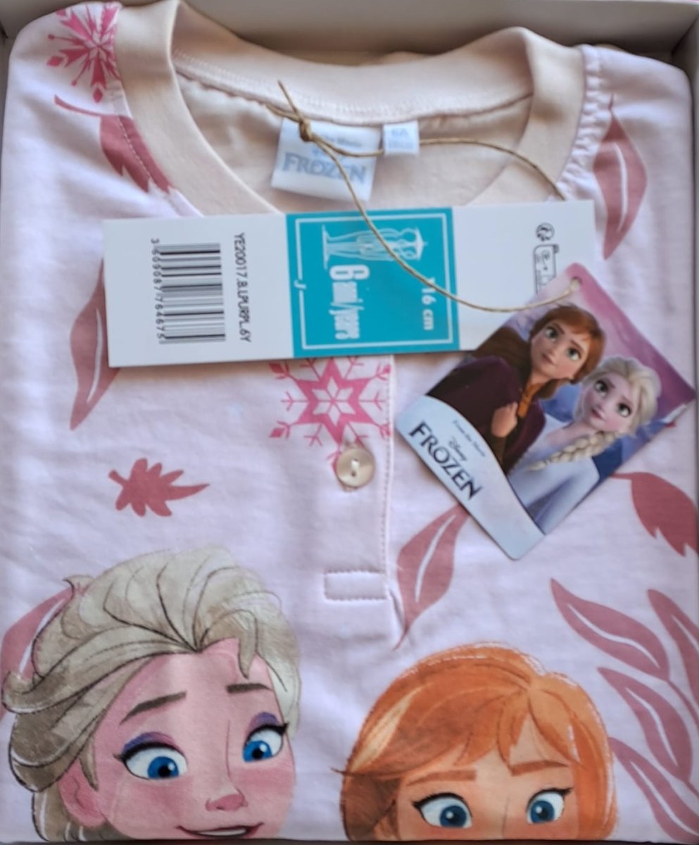 Pigiama Bimba Frozen Marca Sun City con composizione in 100 % Cotone Apertura a 2 Bottoni Pigiama a Maniche lunghe Confezionato in Scatola Taglie: 4 Anni – 5 Anni – 6 Anni – 7 Anni – 8 Anni