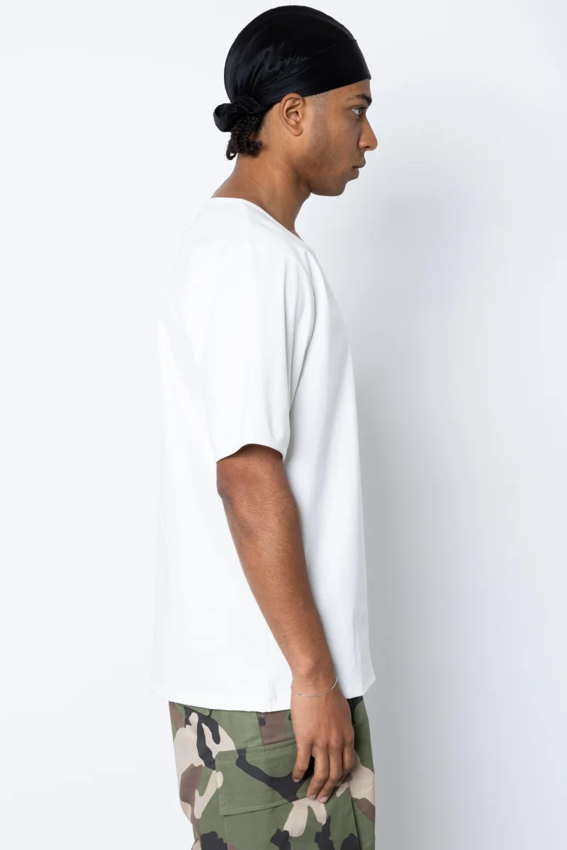 t-shirt belen Eternal Il modello รจ alto 188cm ed indossa la taglia M Made in Italy