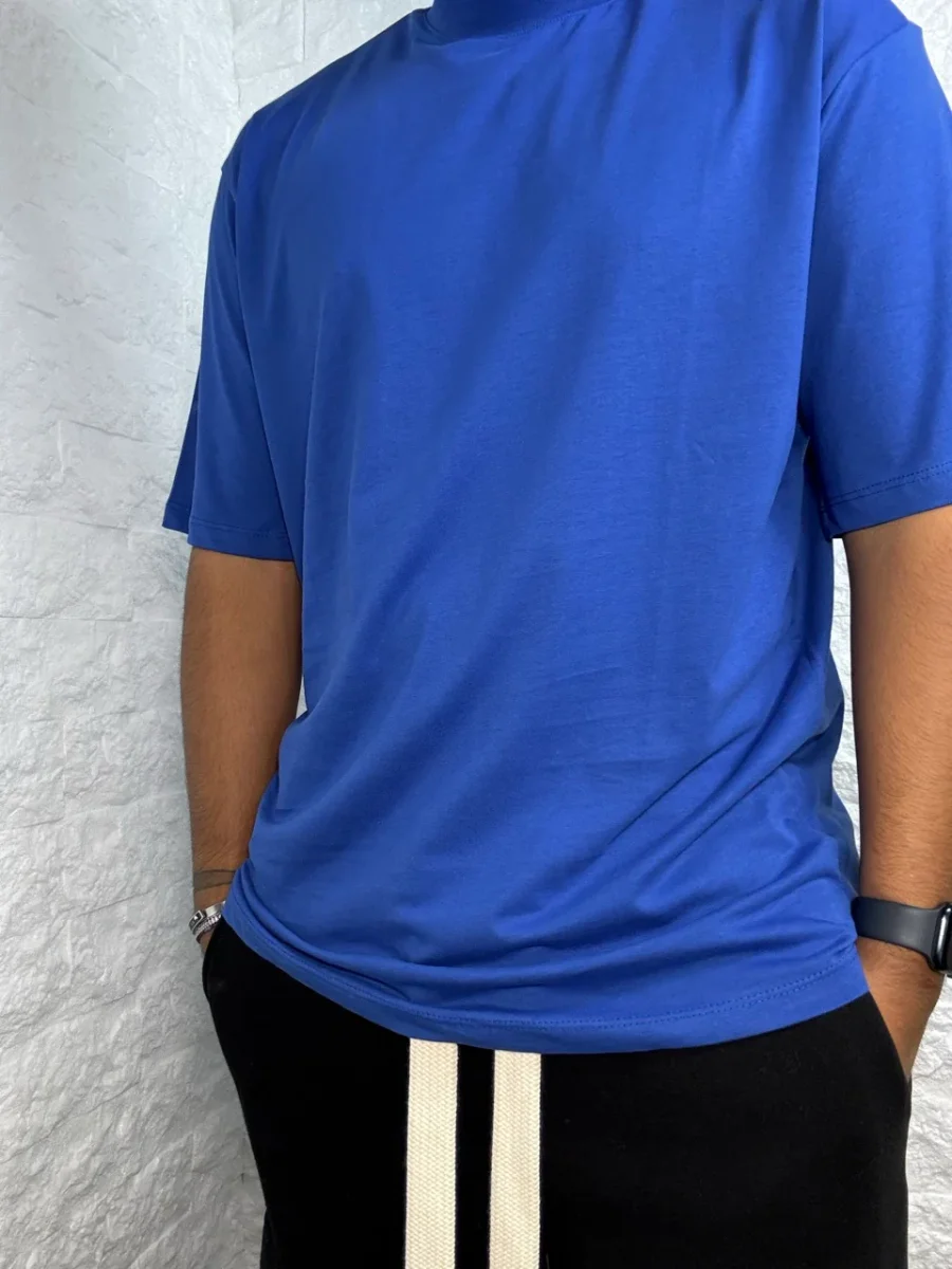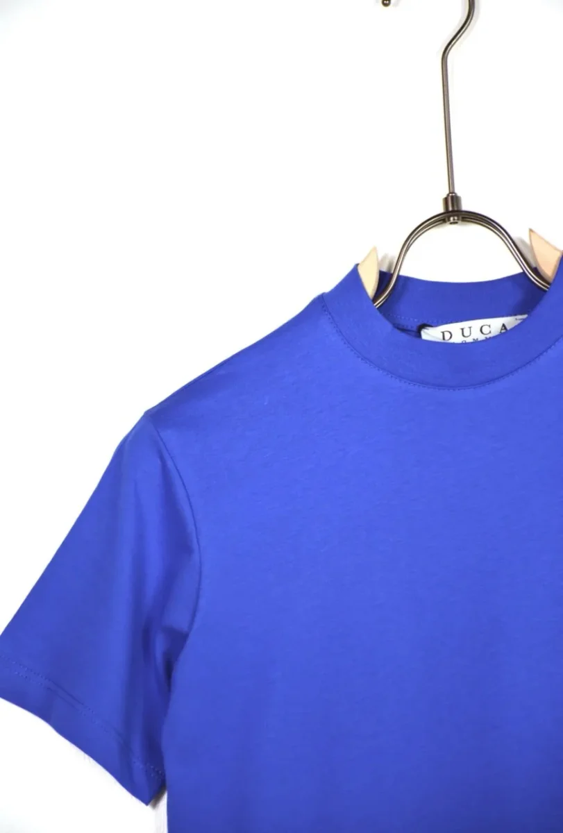 T-shirt blu in tinta unita con mezzo collo alto