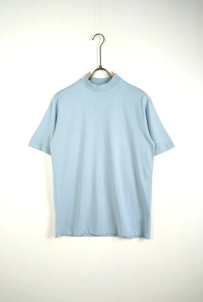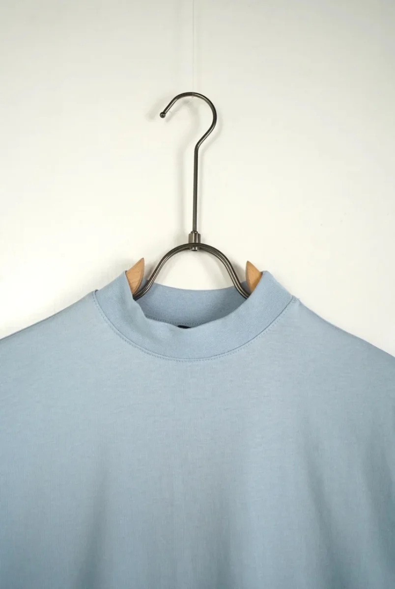 T-shirt celeste in tinta unita con mezzo collo alto
