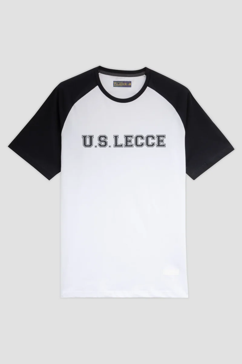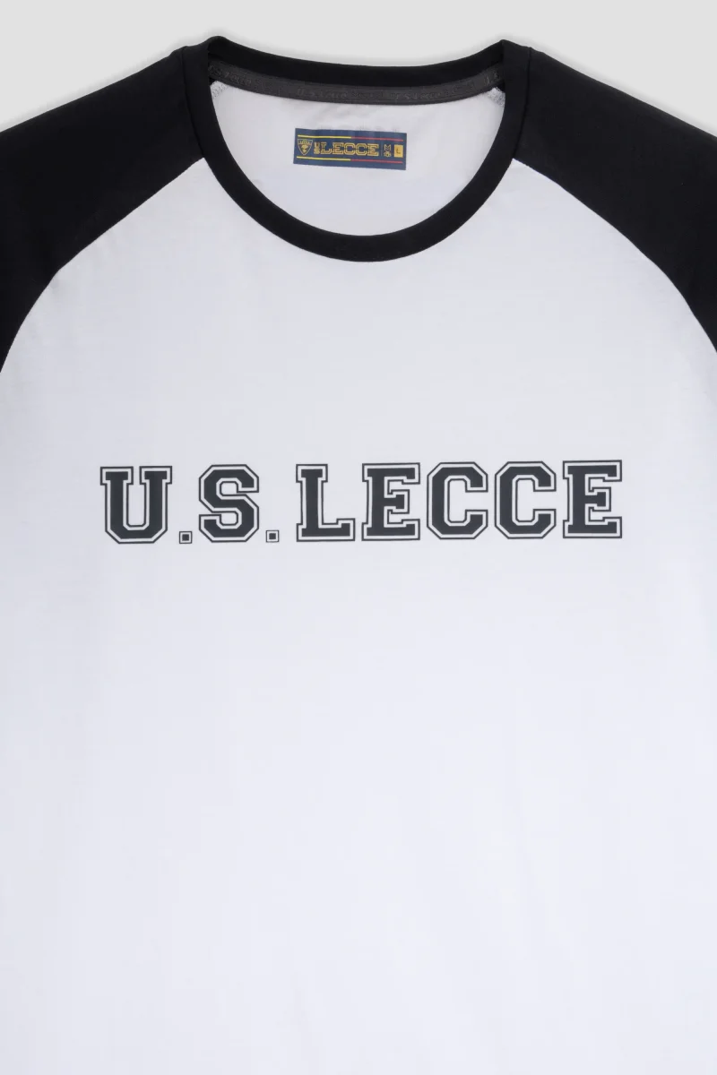 T-shirt in cotone con maniche raglan a contrasto e stampa frontale U.S. Lecce in stile college. Marchio di autenticitร tono su tono sul bordo inferiore. Composizione: 100% Cotone
