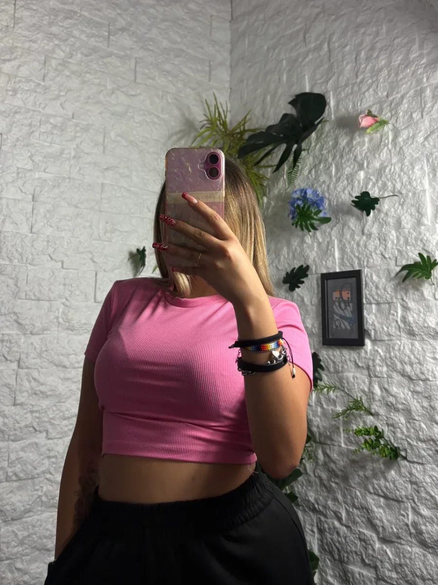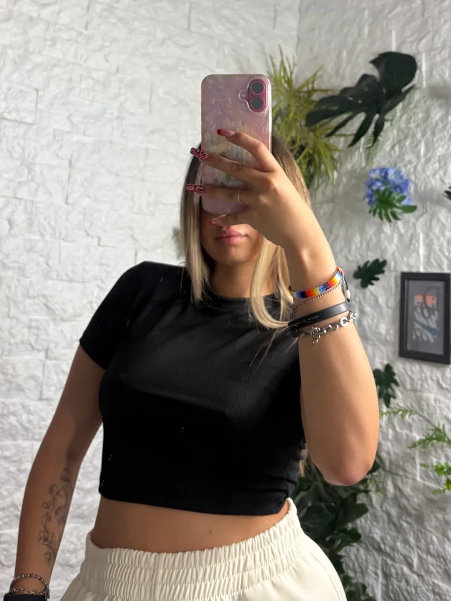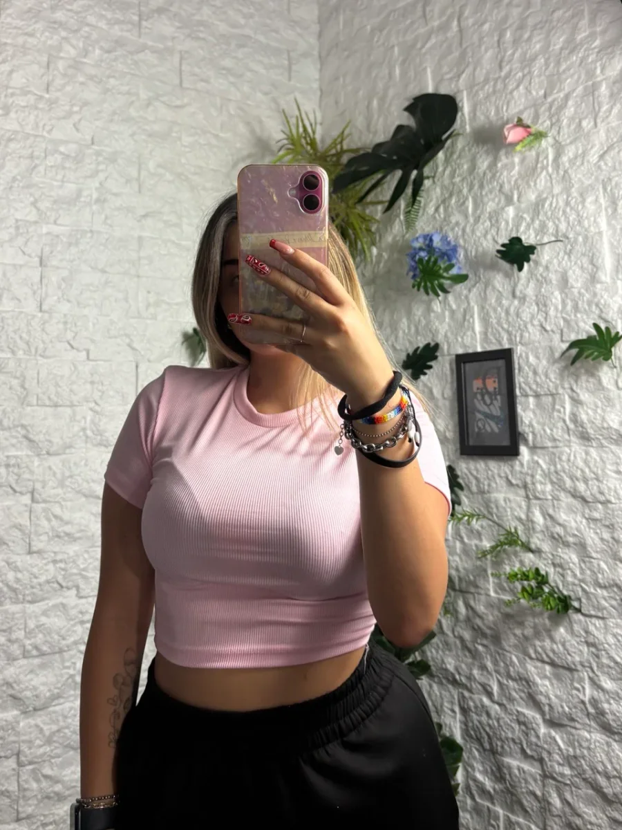 T-shirt crop-top a costine in tinta unita